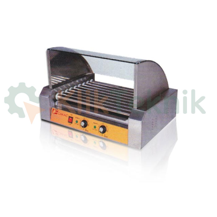 Mesin hot dog GRL-ER25 berfungsi untuk pemanggang hotdog secara otomatis dengan cara kerja memutar sosis. Bisa digunakan di luar dan di dalam ruangan. Menggunakan energi listrik.