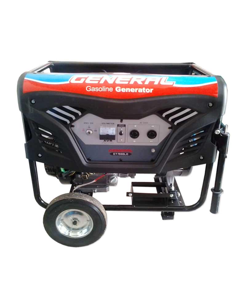 GENERAL ET7000LE Menggunakan bahan bakar bensin. Memiliki frekuensi sebesar 50 Hz dengan nilai output 5.0/5.5 kW pada tegangan 220V. Berkapasitas bahan bakar sebanyak 25 liter dengan konsumsi sebesar 2.8 liter/jam dilengkapi alat pengatur tegangan AVR agar menghasilkan output konstan dan lebih stabil. GENERAL ET7000LE sangat cocok untuk sebuah generator rumahan, sekolah, toko, perkantoran dan rumah sakit dll.