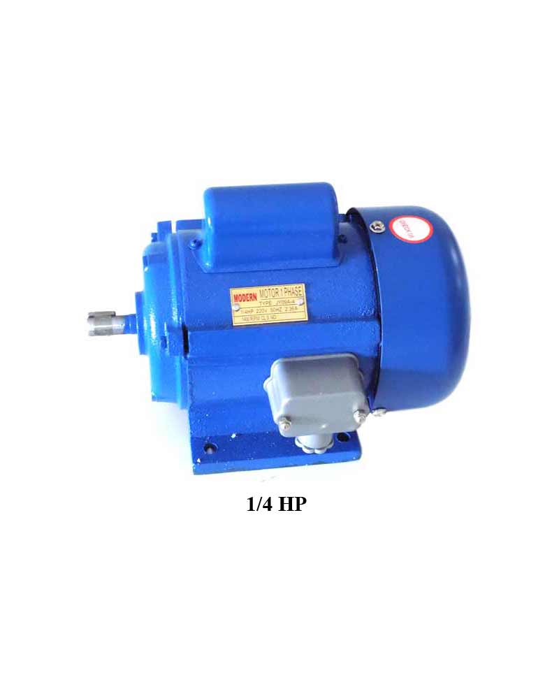Merupakan mesin penggerak 1 Phase berdaya 1/4 HP / 0.18 kW berkecepatan putaran 1450 rpm. Untuk dapat menggerakkan ElectroMotor 1/4 HP ini dibutuhkan voltase listrik yang tidak terlalu besar yaitu pada tegangan AC 220 V.